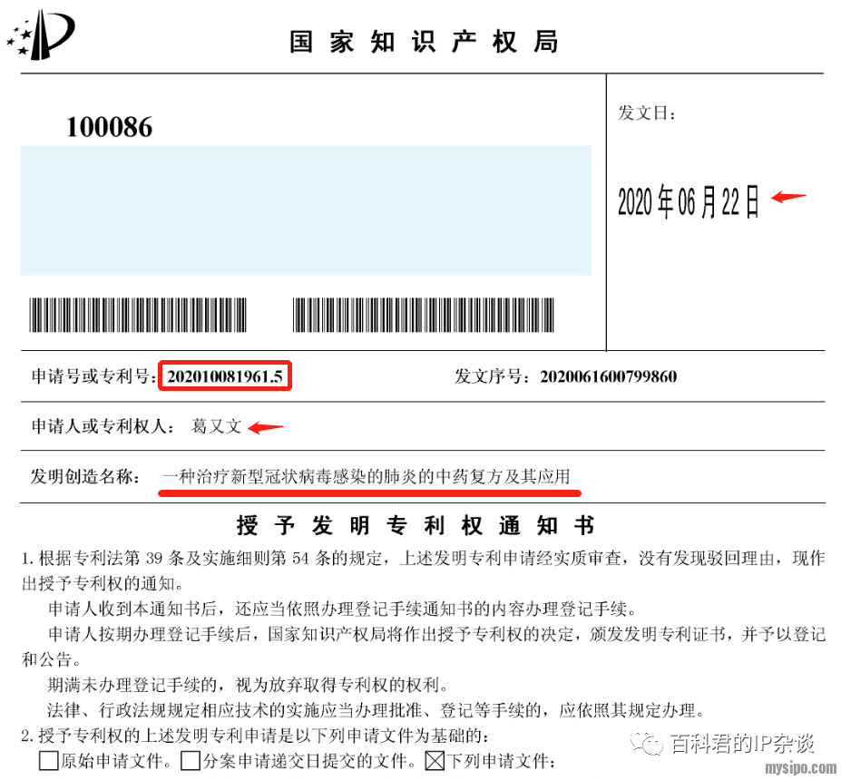 原标题:清肺排毒汤的发明专利,授权了!提前公开后提交两次不丧失新颖性证明