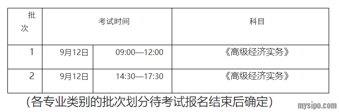 高级考试分上、下午2个批次在1天内实施。各专业类别具体考试时间和批次划分视报名情况另行确定。若遇特殊情况无法正常完成考试,于9月20日统一组织补考。