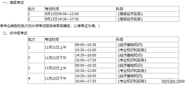 初中级考试分2天上、下午4个批次实施。各级别及专业类别的具体考试时间和批次划分视报名情况另行确定。