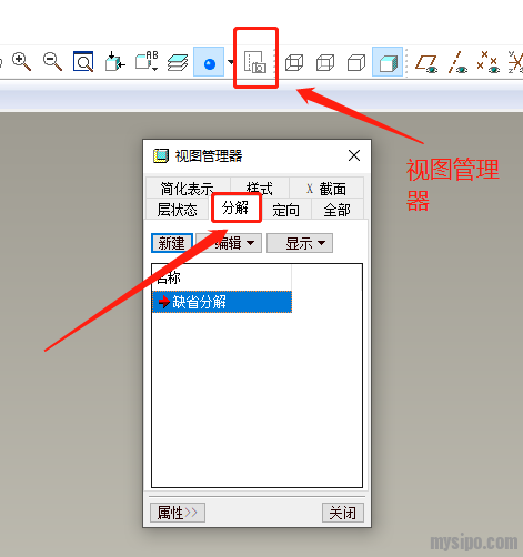 2.2、选择新建,并输入爆炸图名称(如B1)后回车,选择左下方的属性:
