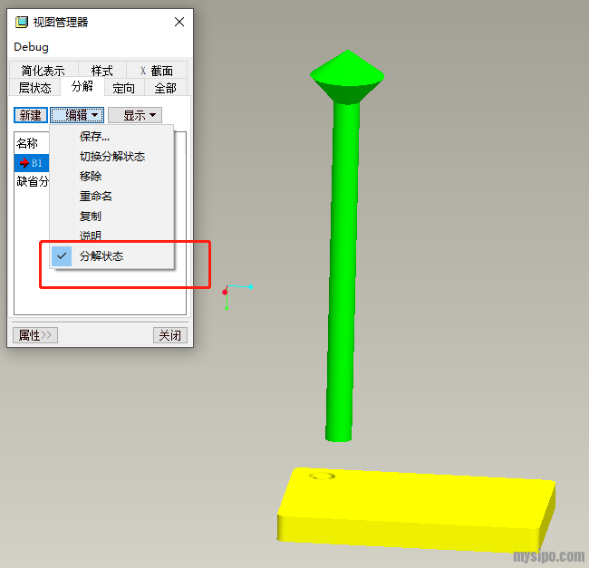 注:通过点击分解状态,可以在装配状态和爆炸状态之间切换:
