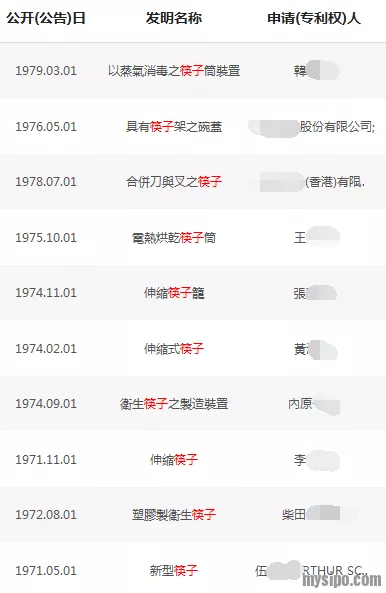 此外,还有人在筷子的环保与便利问题上也进行了研发,并为此申请实用或新型专利。(下图只截取了最早及最新的专利申请信息)