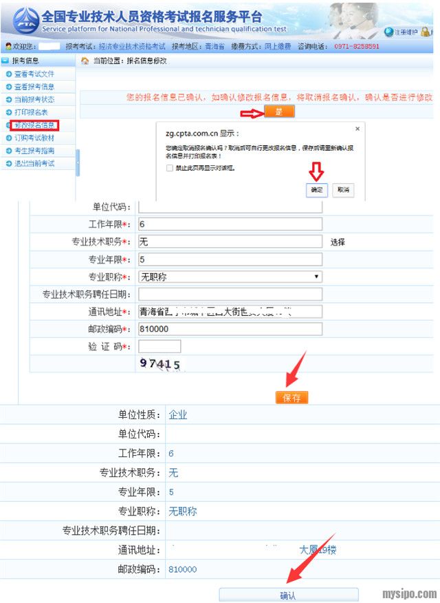 1.在“报名信息确认”前,考生可自行修改报名信息。完成“报名信息确认”环节后,考生个人和省人事考试单位均无权进行修改,请考生谨慎操作,报考时严格按照流程提示操作。