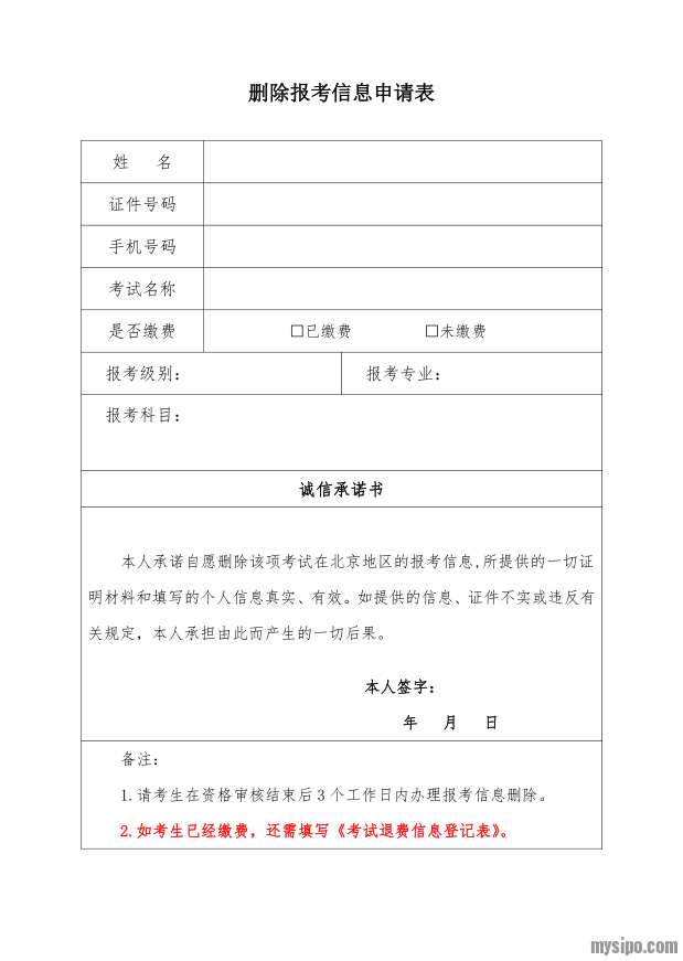13、已在北京地区报名成功的考试如何删除报考信息?