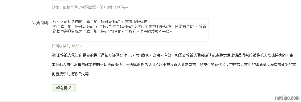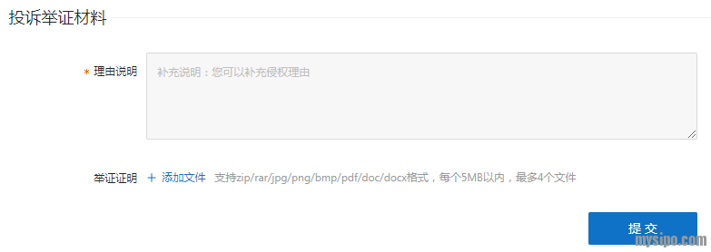 6.填写理由,适当说明其侵权理由,可添加文件举证说明