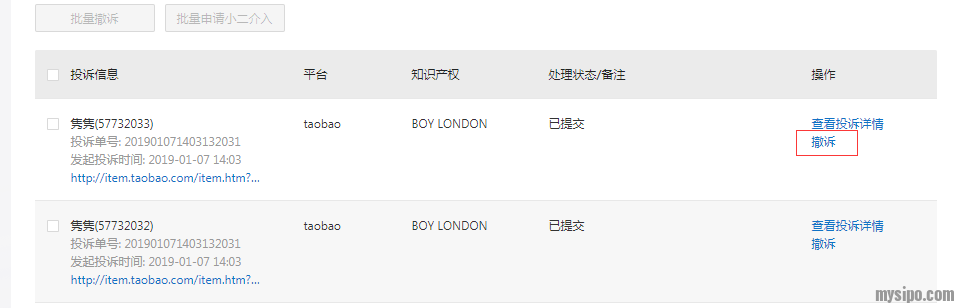 若买家两次申诉失败,则需发送撤诉邮件给淘宝(ipr@alibaba-inc.com),具体格式如下: