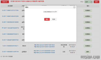 1.点击“我的维权”界面中某条投诉记录后的“删除”,弹出确认界面;