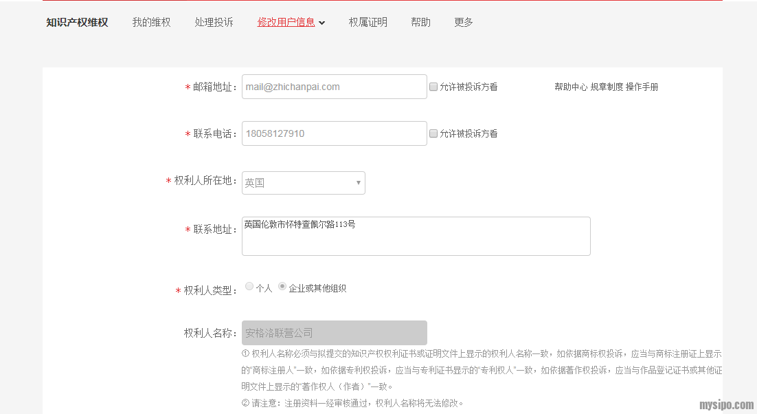 1 | 我的维权 | 维权管理>我的维权>信息查看 | 投诉信息查看 |