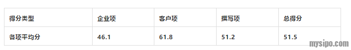 将四川省上榜的106家代理所各项得分的平均得分情况见下表: