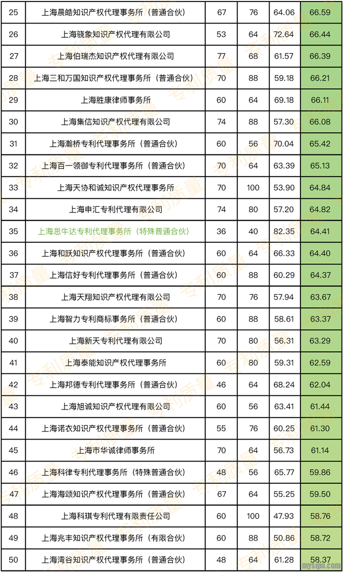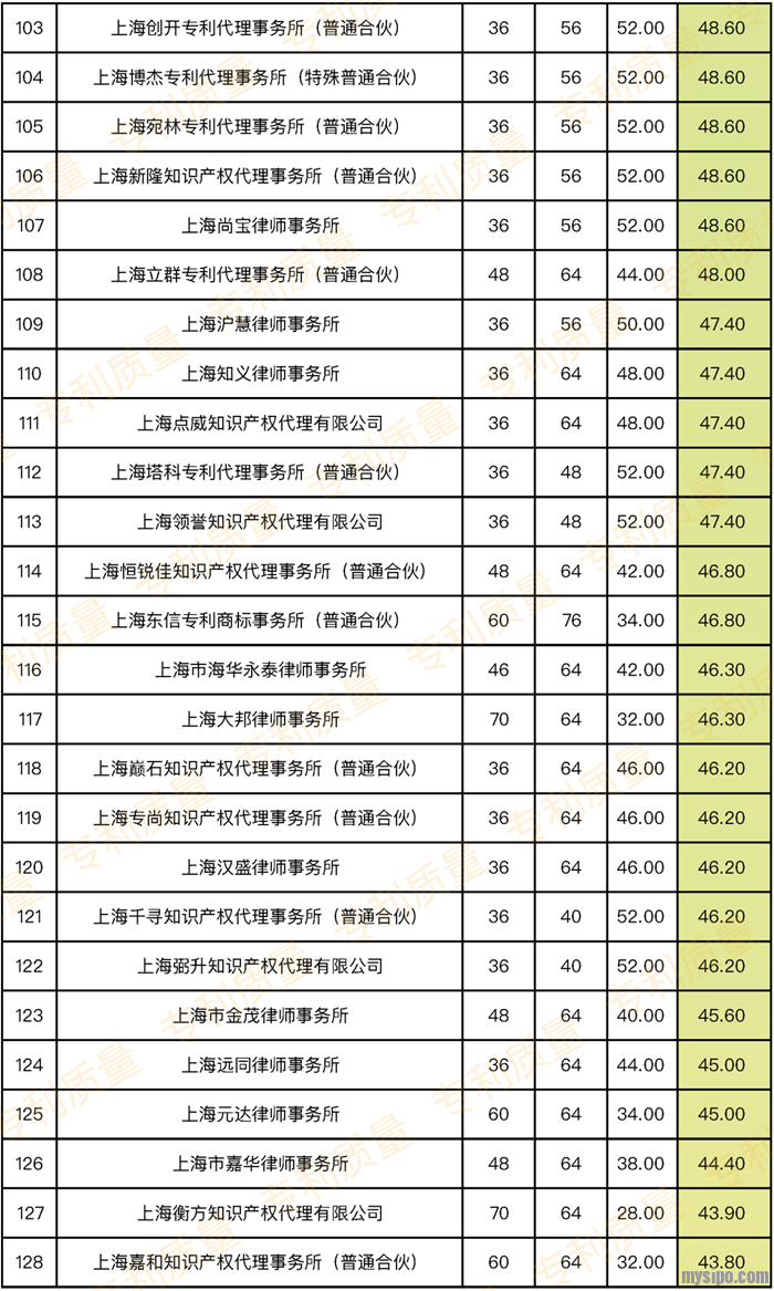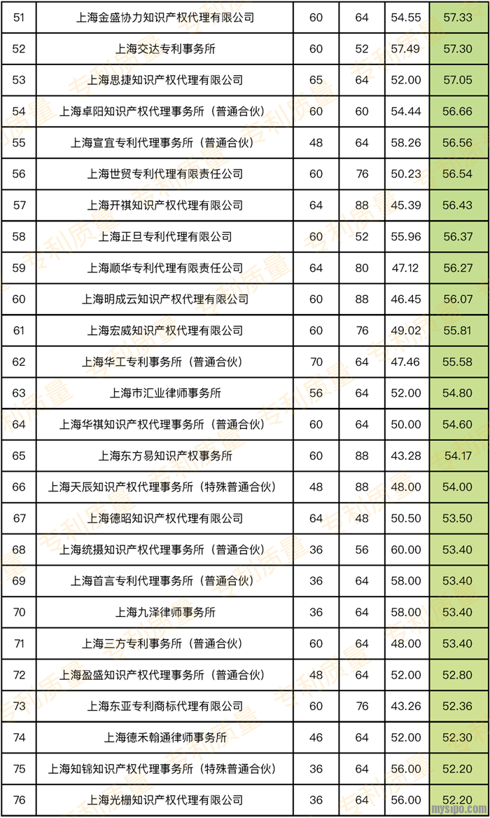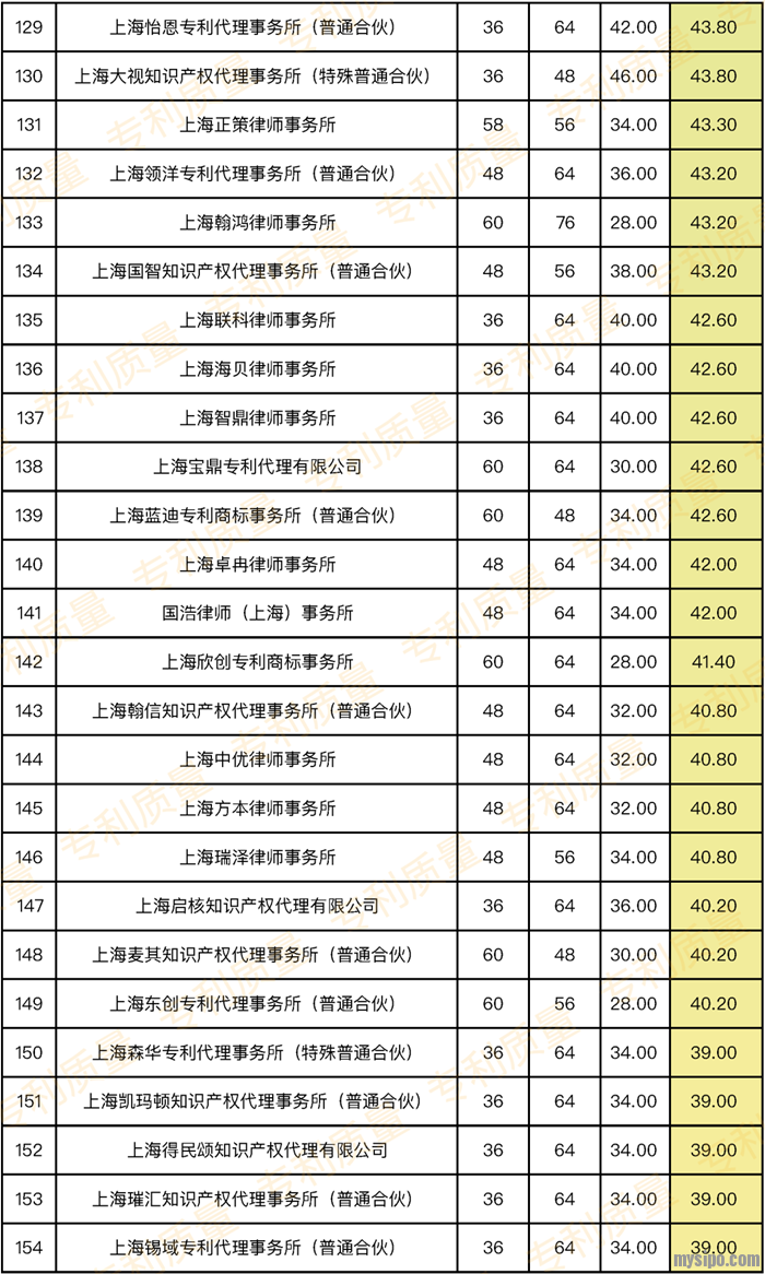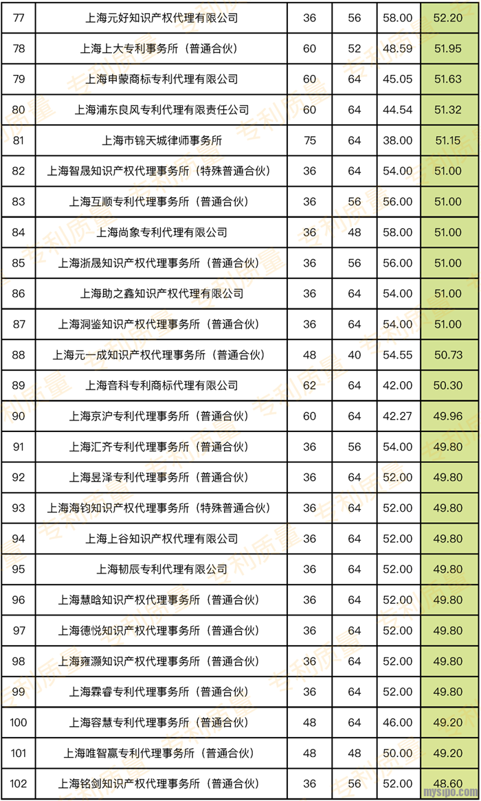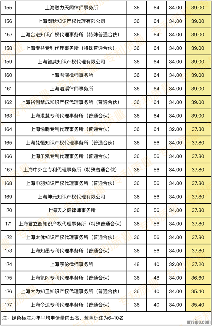 如上图所示,在上海市有代理专利数据的代理所共计177家,通过上表可以得出: