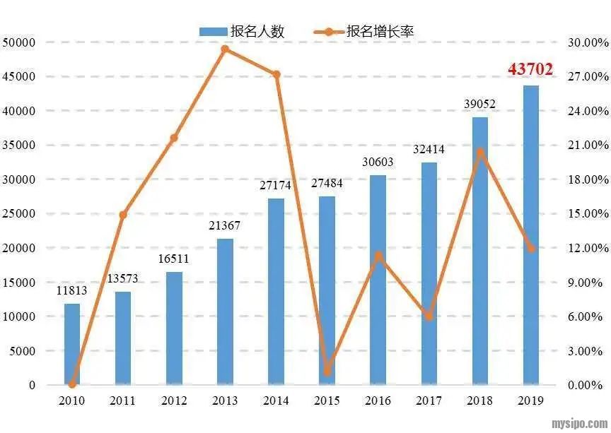 全国专利代理师资格考试自1992年起至今已成功举办21次,为知识产权事业的发展不断遴选和输送优秀专业人才。2019年全国共有4.3702万人报名考试,5381人通过考试取得专利代理师资格。