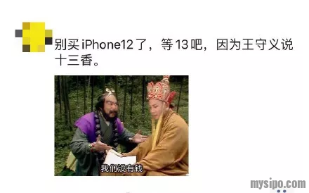 这个新梗出自对iPhone 12发布会结束后的调侃,因为王守义说十三香,意思为下一台更香,毕竟iPhone 12不仅不配充电器而且电池还缩水了。