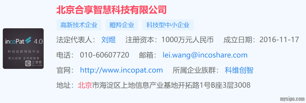 incoPat北京合享智慧出品,国内知名的商业专利数据库。
