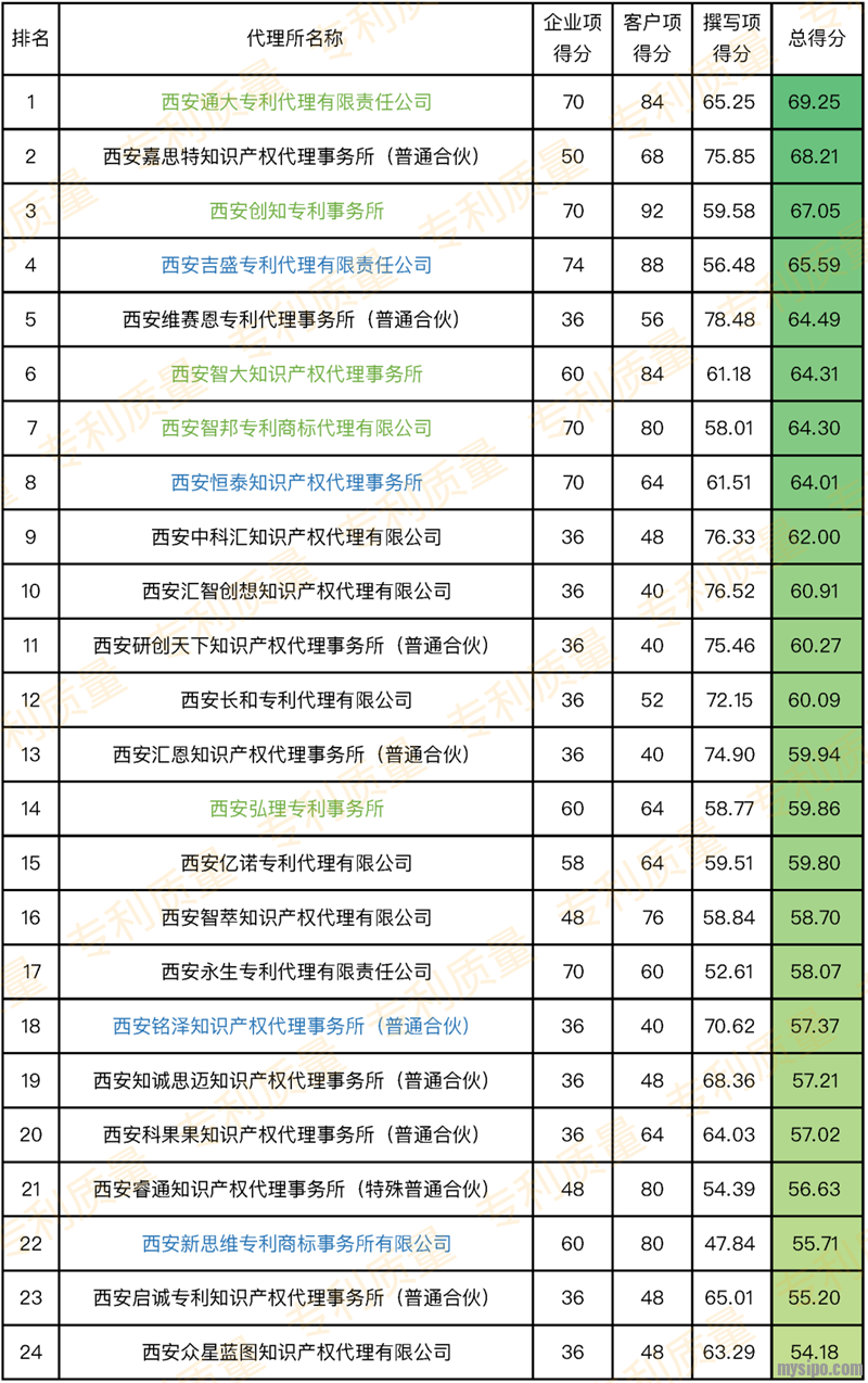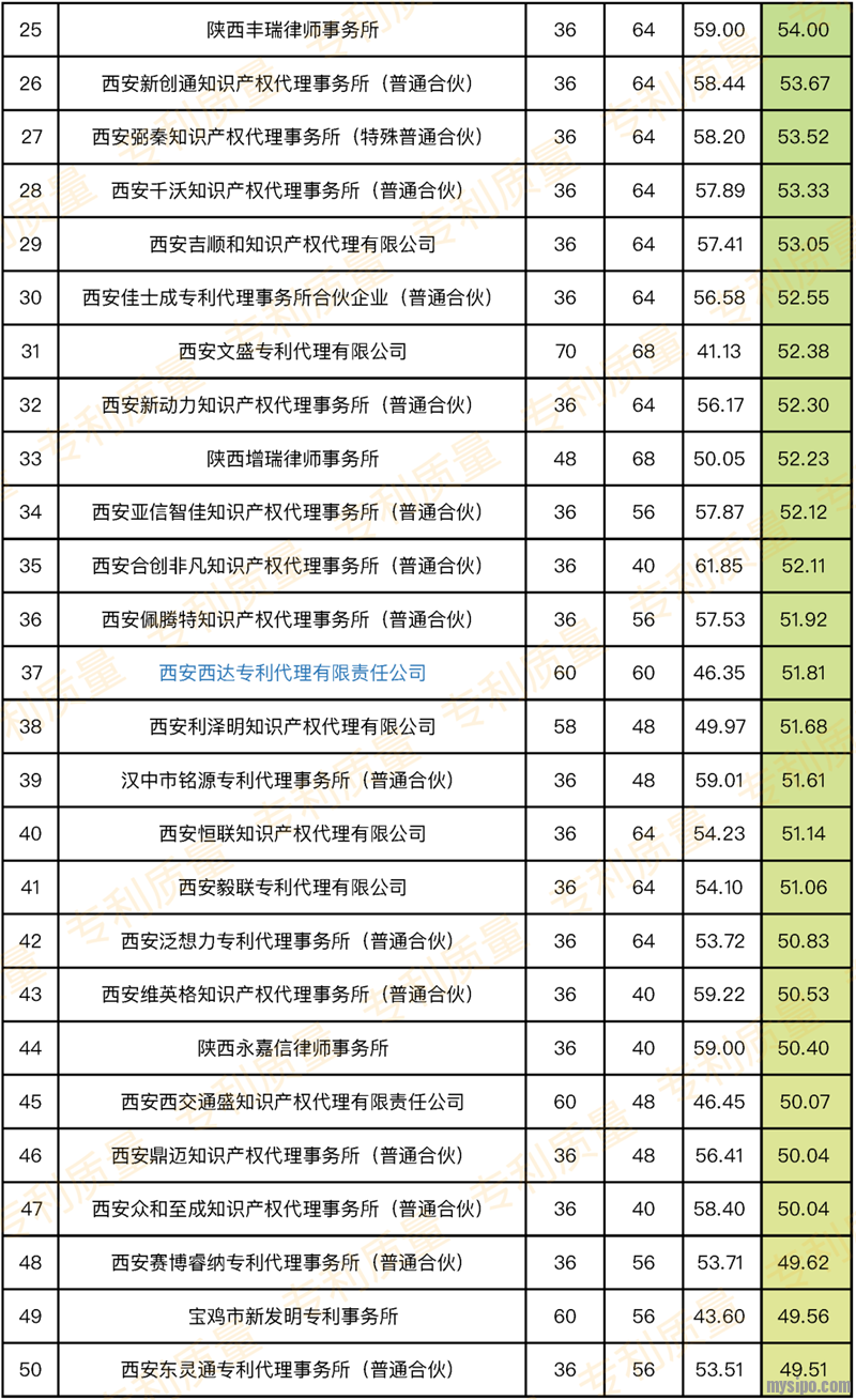 陕西省专利代理所大排行(附评分)