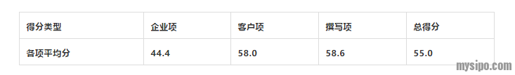 将陕西省上榜的57家代理所各项得分的平均得分情况见下表: