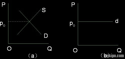 单个厂商面临的需求曲线是一条平行于横轴的水平线,如上图中(b)所示。
