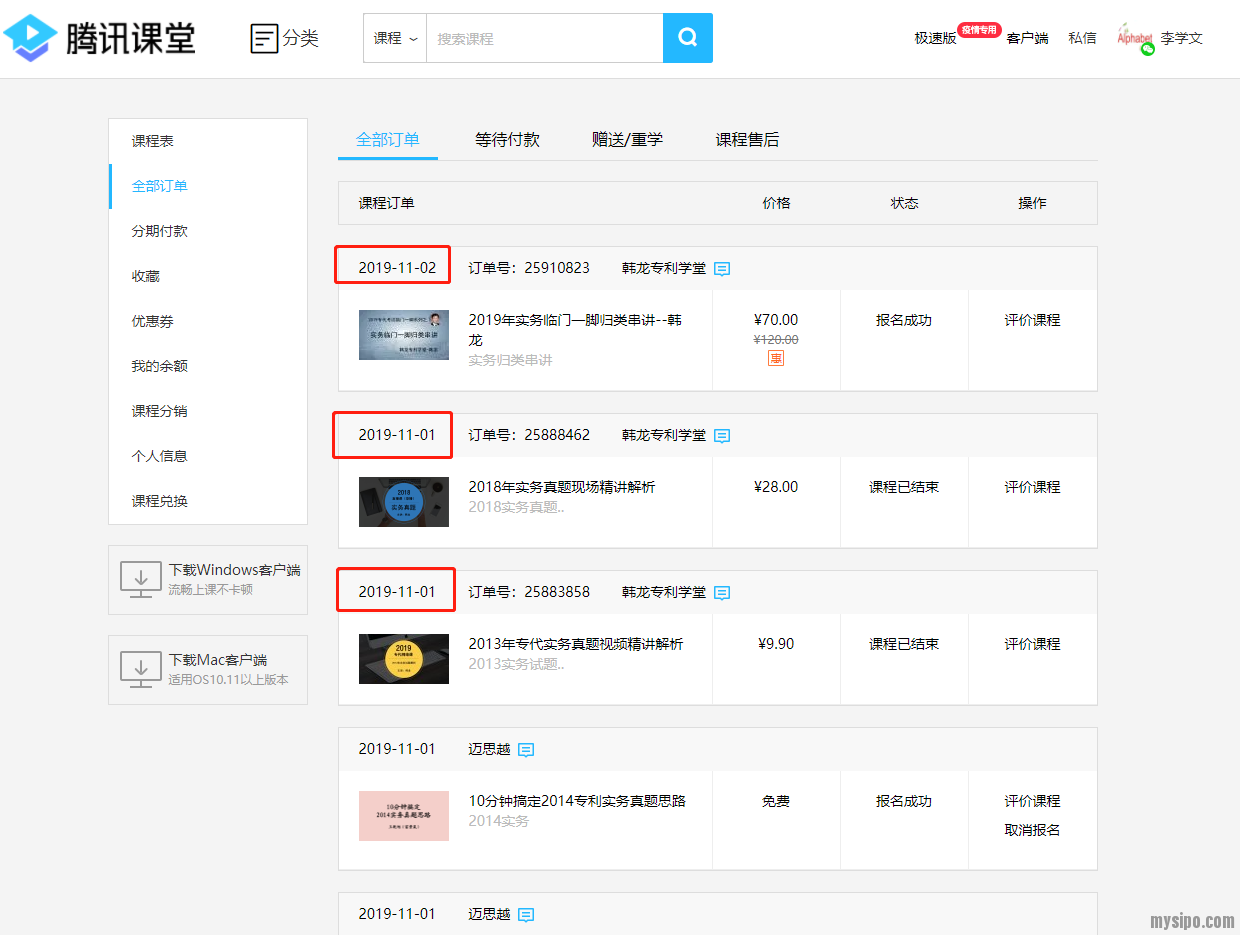 第一张贴图显示了课程的购买时间;