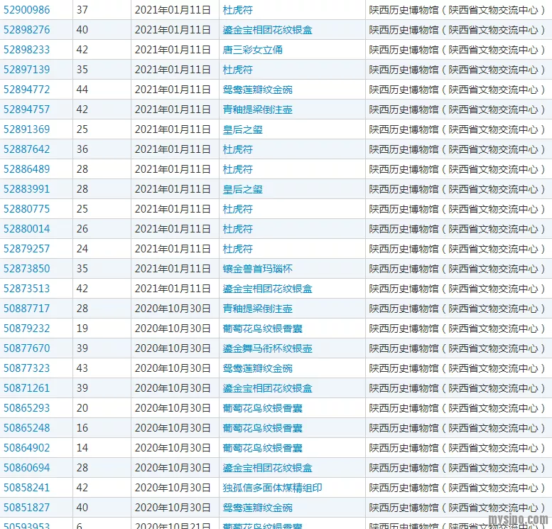 再如陕西博物馆(陕西省文物交流中心),同样申请注册了以馆藏精品文物命名的“唐三彩女立俑”“杜虎符”“鸳鸯莲瓣纹金碗”“皇后之玺”“葡萄花鸟纹银香囊”“镶金兽首玛瑙杯”“鎏金铁芯铜龙”等商标,还注册了体现当时社会背景的“宫女图”“观鸟捕蝉图”“马球图”“客使图”等。