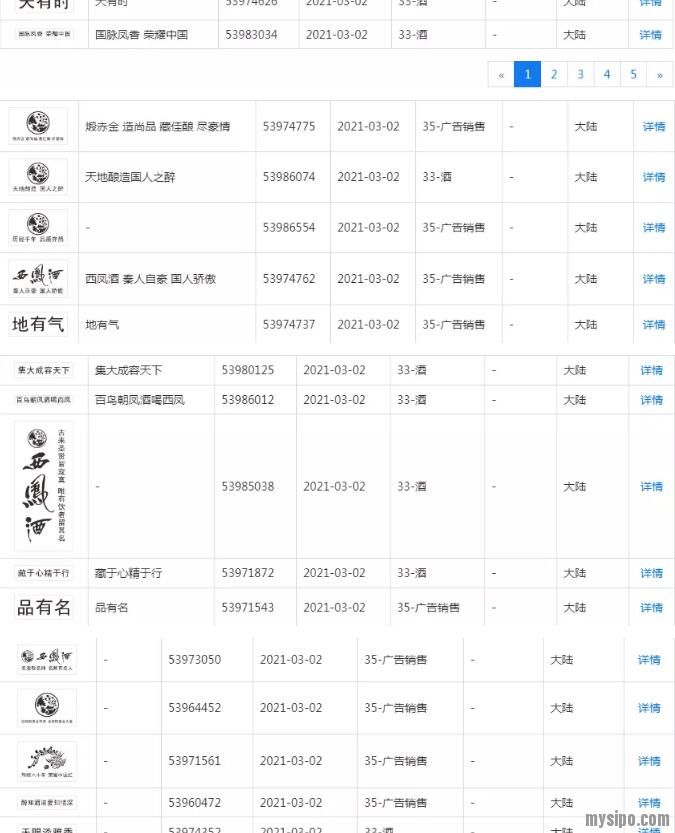 果然,蜗牛纳看到西凤酒还申请了“国脉凤香 荣耀中国”、“国脉凤香 圣贤之尊”、“西凤酒 秦人自豪 国人骄傲”、“西凤酒 古来圣贤皆寂寞 唯有饮者留其名”等多个商标,国际分类涉及35-广告销售、33-酒类销售,商标状态均为“商标申请中”。