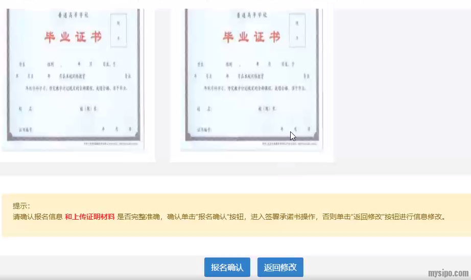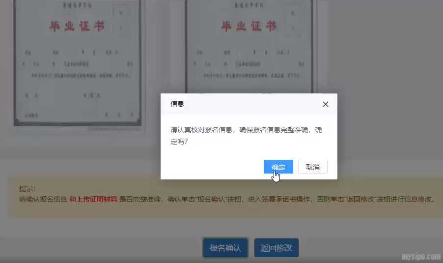 点击【报名确认】,系统弹出报名信息二次确认对话框