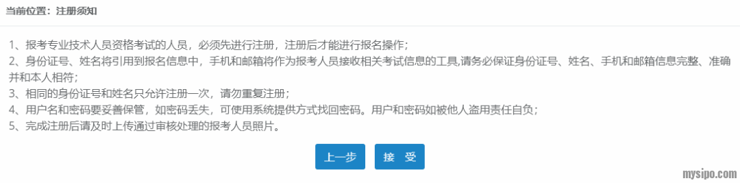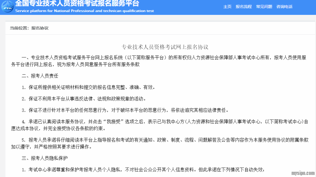 3、点击“新用户注册”按钮后进入报名协议界面,报考人员应认真阅读并确认接受报名协议