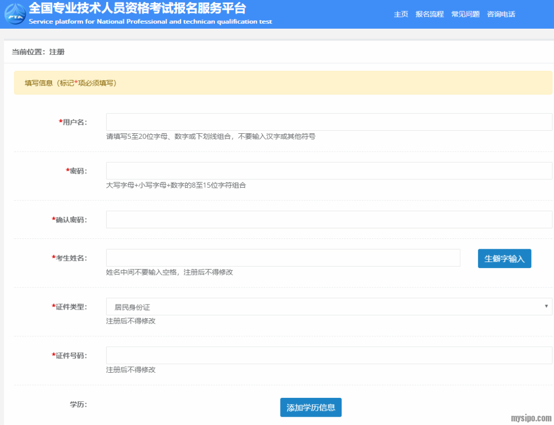 1、新用户注册需信息录入:个人身份信息、学历学位信息等
