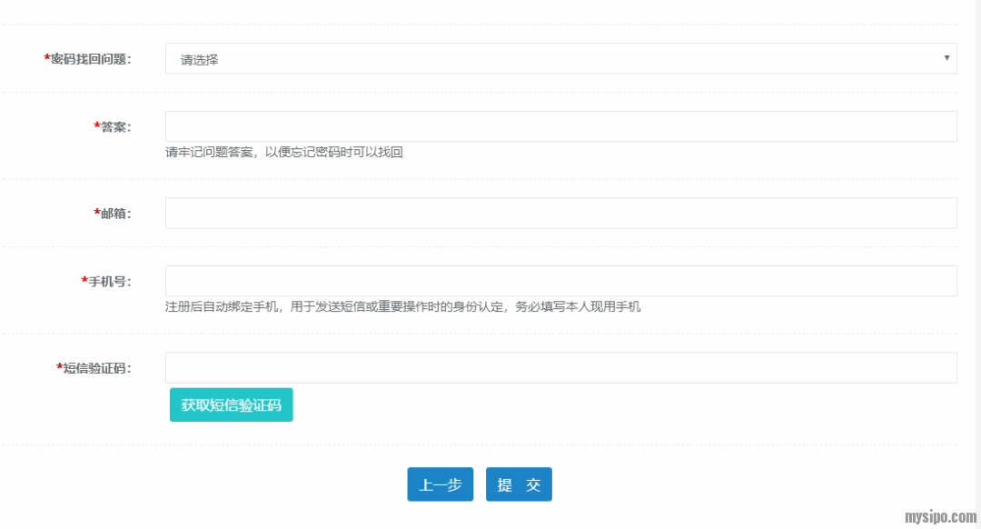 并进行信息录入完成后输入验证码,点击“提交”按钮