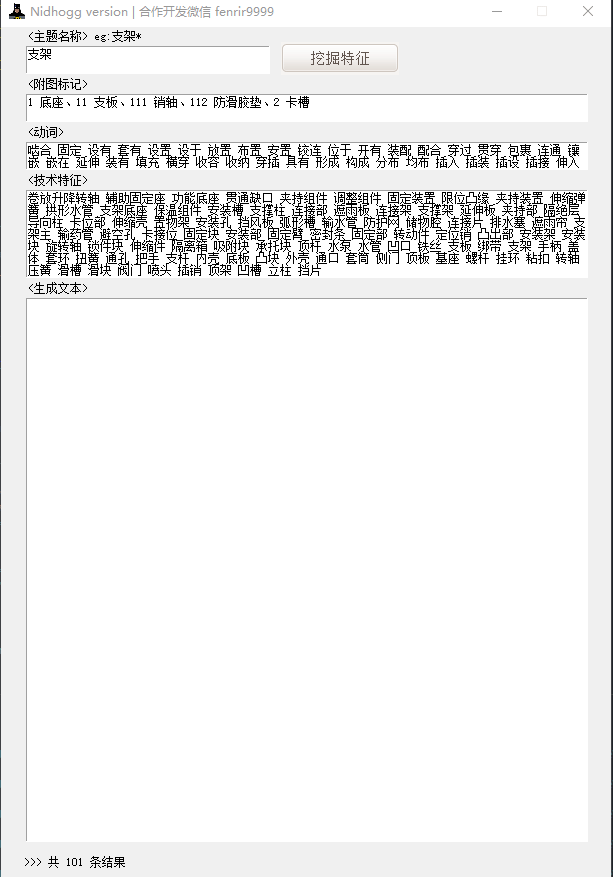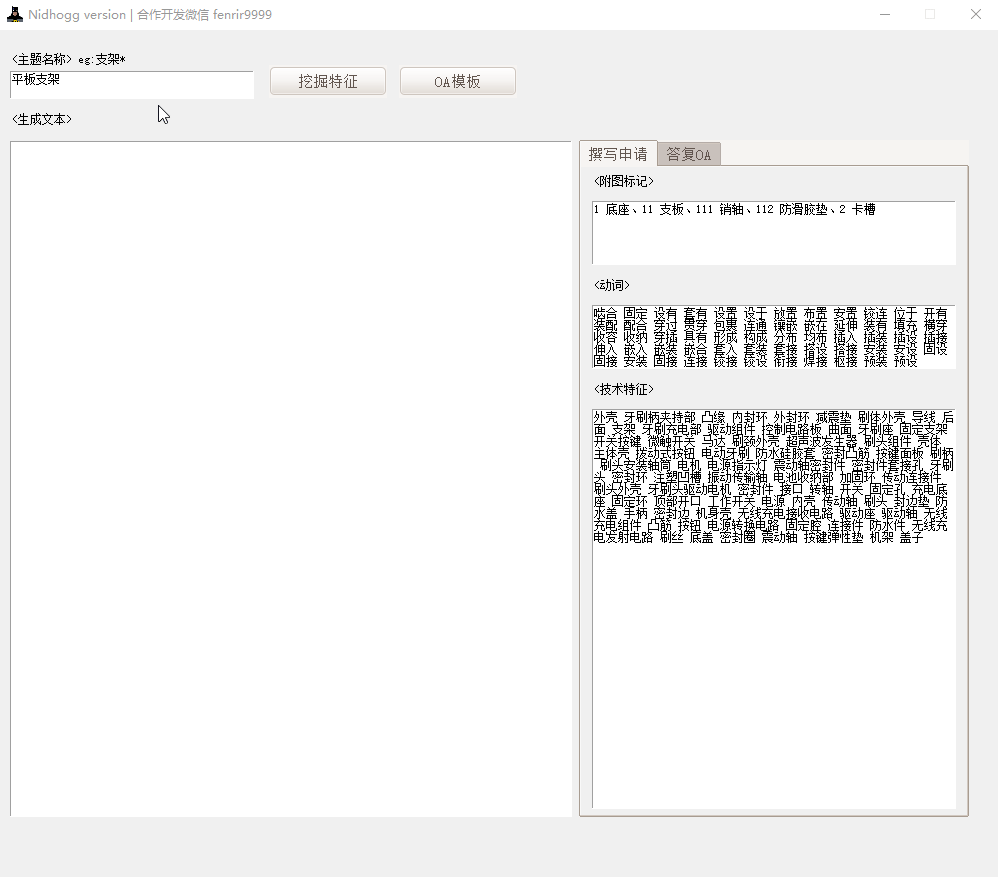 在<生成文本>输入文本框中通过输入附图标记所对应的数字,即可快速获得相应的附图标记名称,通过“空格键”确认输入,与搜狗输入法类似。