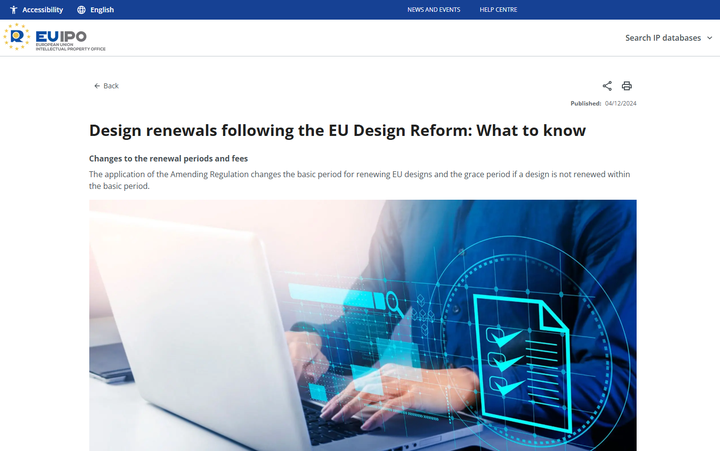 近期,欧盟知识产权局发布官方公告,宣布将自2025年5月1日起,上调外观设计年费,同时,还将调整欧盟外观设计年费续展期限计算规则。