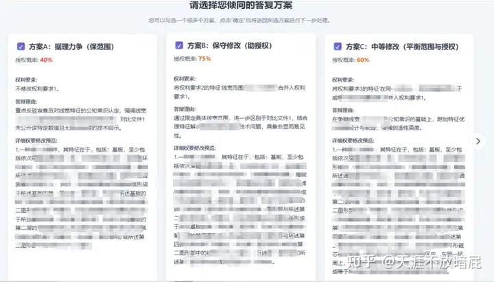 • 系统自动在10分钟内生成3份不同的意见陈述书,给予用户多个答辩点的预览与选择。