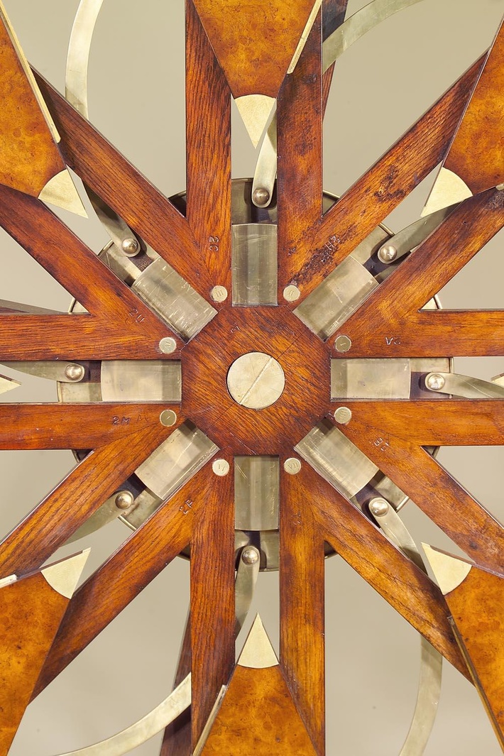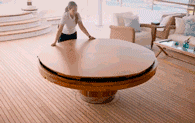 如图所示,这张桌子原本是一张小圆桌,轻轻将桌面逆时针转90°左右,小圆桌像变魔法一样,变成了大圆桌。然而,就是这个像变魔法一样的功能,让它成为你所见到的可能最贵的一张实用桌子。异想创意了解到它的价格是7.5万美元。它叫弗莱彻圆桌——The Fletcher Capstan Table。
