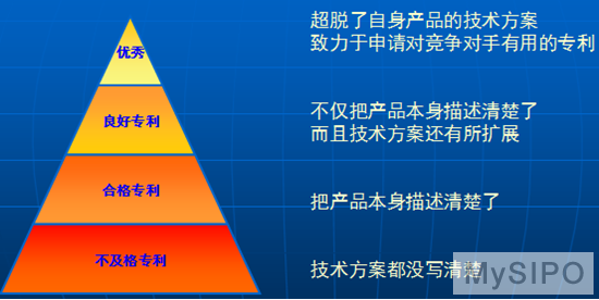我看到单个一篇专利的时候,心里给它打分一般分为不及格、合格、良好和优秀,但完美的专利是不存在的,因为完美的是专利集群,而不是单个专利。