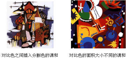 对比色的调和:以色相相对或色性相对的某类色彩,如红与绿、黄与紫、蓝与橙的调和。调和方法有:选用一种对比色将其纯度提高或降低另一种对比色的纯度;在对比**间插入分割色(金、银、黑、白、灰等);采用双方面积大小不同的处理方法,以达到对比中的和谐;对比**间具有类似色的关系,也可起到调和的作用。