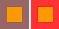 明度对比:因明度之间的差别形成的对比。明度高的会显得明亮,明度低的会显得暗。例如:柠檬黄明度高,蓝紫色的明度低,橙色和绿色属中明度,红色与蓝色属中低明度。对于同一明度的色彩,在白底上会显得暗,而在黑色背景上却显得亮。如下图: