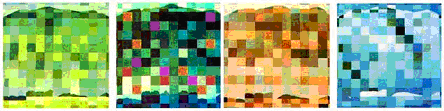 除去冷暖色系具有明显的心理区别以外,色彩的明度与纯度也会引起对色彩物理印象的错觉。一般来说,颜色的重量感主要取决于色彩的明度,暗色给人以重的感觉,明色给人以轻的感觉。纯度与明度的变化给人以色彩软硬的印象,如淡的亮色使人觉得柔软,暗的纯色则有强硬的感觉。下图是使用不同的色彩所带来的春、夏、秋、冬四种不同心理感受。