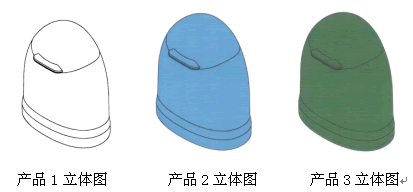 《审查指南》第四部分第五章7.5色彩相近似性的判断中,有如下规定:对色彩是否相同、相近似的判断要根据颜色的色相、纯度和明度三个属性以及两种以上颜色的组合、搭配进行综合判断。色相包括赤、橙、黄、绿、青、蓝、紫及其组合;纯度指鲜艳程度;明度指明暗情况,也即亮度。单一色彩的外观设计仅作色彩改变,两者仍属于相近似的设计。在如下的案例中,申请人在一个申请中提交了三件产品的外观设计申请,并对件2、件3的色彩请求保护。从视图可知:这三件产品只有色彩上的区别。根据《审查指南》第四部分第五章7.5的规定,尽管申请人请求保护了件2、件3的色彩,这三件产品仍然是近似的外观设计,只有一个产品能够授权,且不能对色彩予以保护。