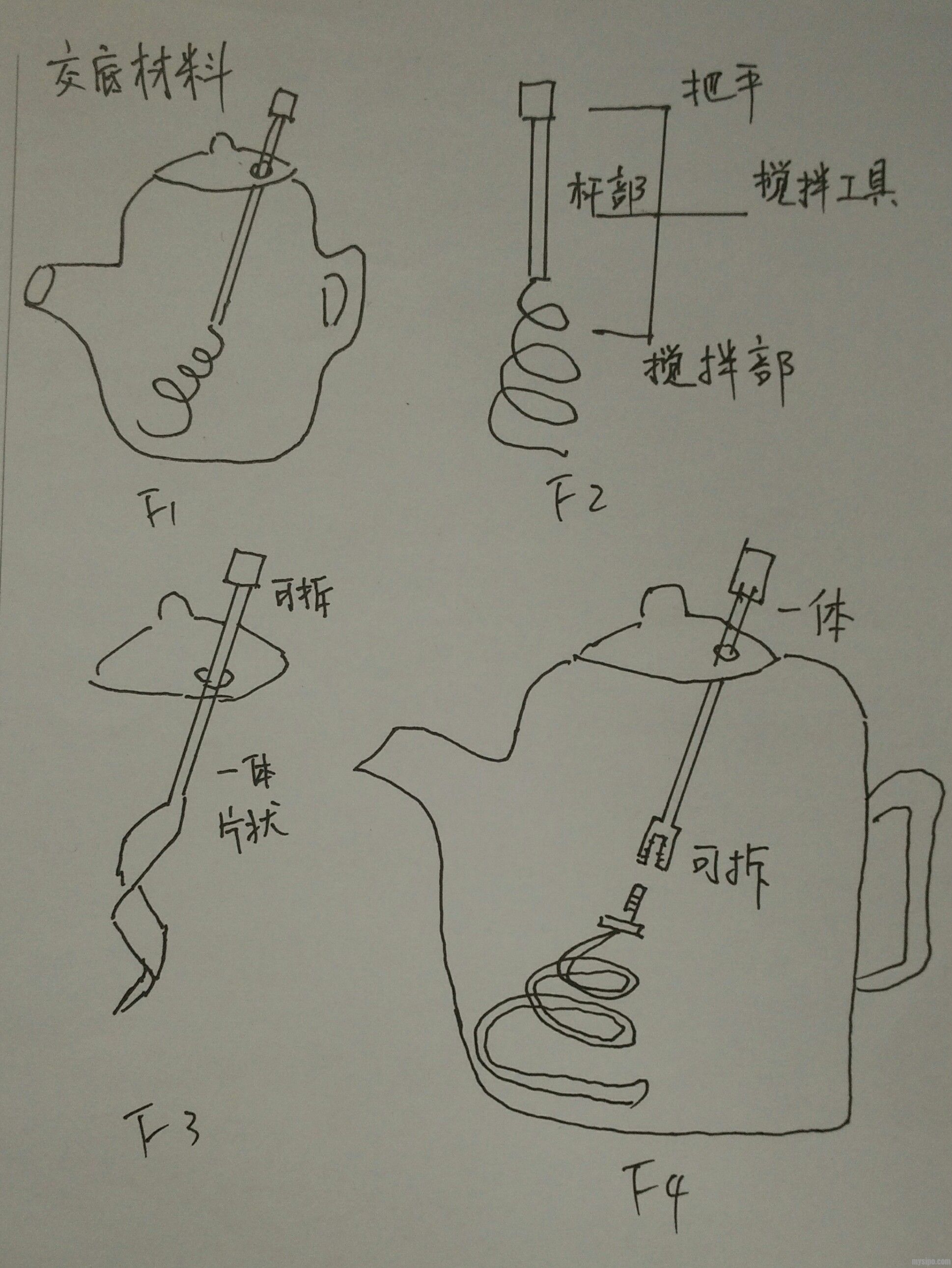 技术问题:现有茶壶需要对壶盖进行改造,例如增加螺母或者螺孔,而且现有搅拌工具无法上下移动形成对流