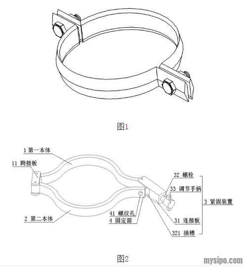 由此可见,该发明中调节手柄带动螺栓的拧紧动作,并不能产生左右两片本体相互靠拢的夹紧结果,因此根本无法实现卡箍的闭合过程。