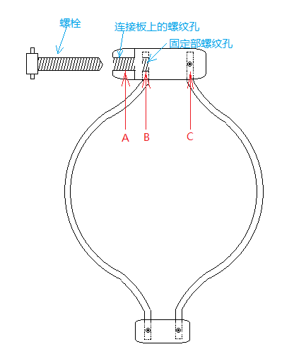 A、C是连接板上的固定部位,A、C之间的距离为定值,在螺栓转动过程中A、B的距离不变,因此B、C的距离也不会发生变化。