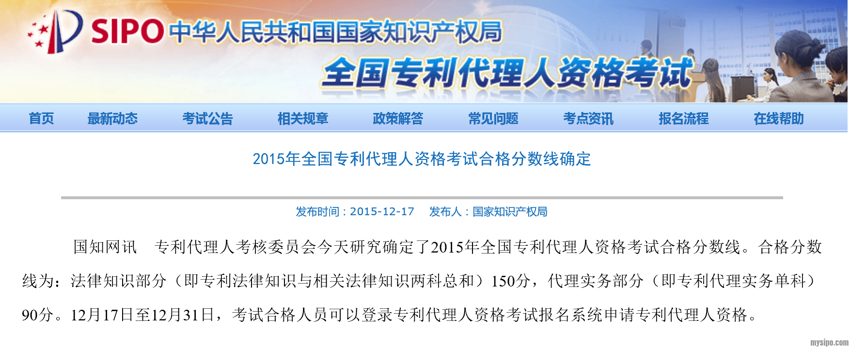 2016年全国专利代理人资格考试合格分数线确定!150分,90分!等待大家经验贴和资料贴!过了的同学要帮帮没过的兄弟!