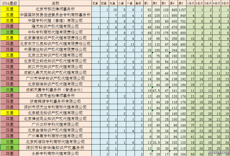你说得很有道理,其一,没有哪家榜单是绝对正确的,因为本来就无正谬之分;其二,相对而言,哪个榜单考虑的因素越多(除了代理量、服务质量,还有申请成功率、经诉专利维持率等),算法模型更成熟,哪个榜单的数据更有说服力。本文因只基于星级评定,再掺入少量别的排行榜的数据,所以考虑的因素非常单一,其价值何在见仁见智。