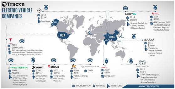 法拉第未来(Faraday Future)的一个重要投资人是中国乐视创始人兼CEO贾跃亭。蔚来汽车则是由易车网前CEO李斌创立,媒体报道称,该公司已从红杉资本、腾讯、愉悦资本(JoyCapital)获得逾5亿美元**。Atieva由特斯拉前董事会成员Bernard Tse于2007年成立,最开始只是计划为电动车电池组提供监测软件,如今,这件公司已经开始向生产电动车转型。