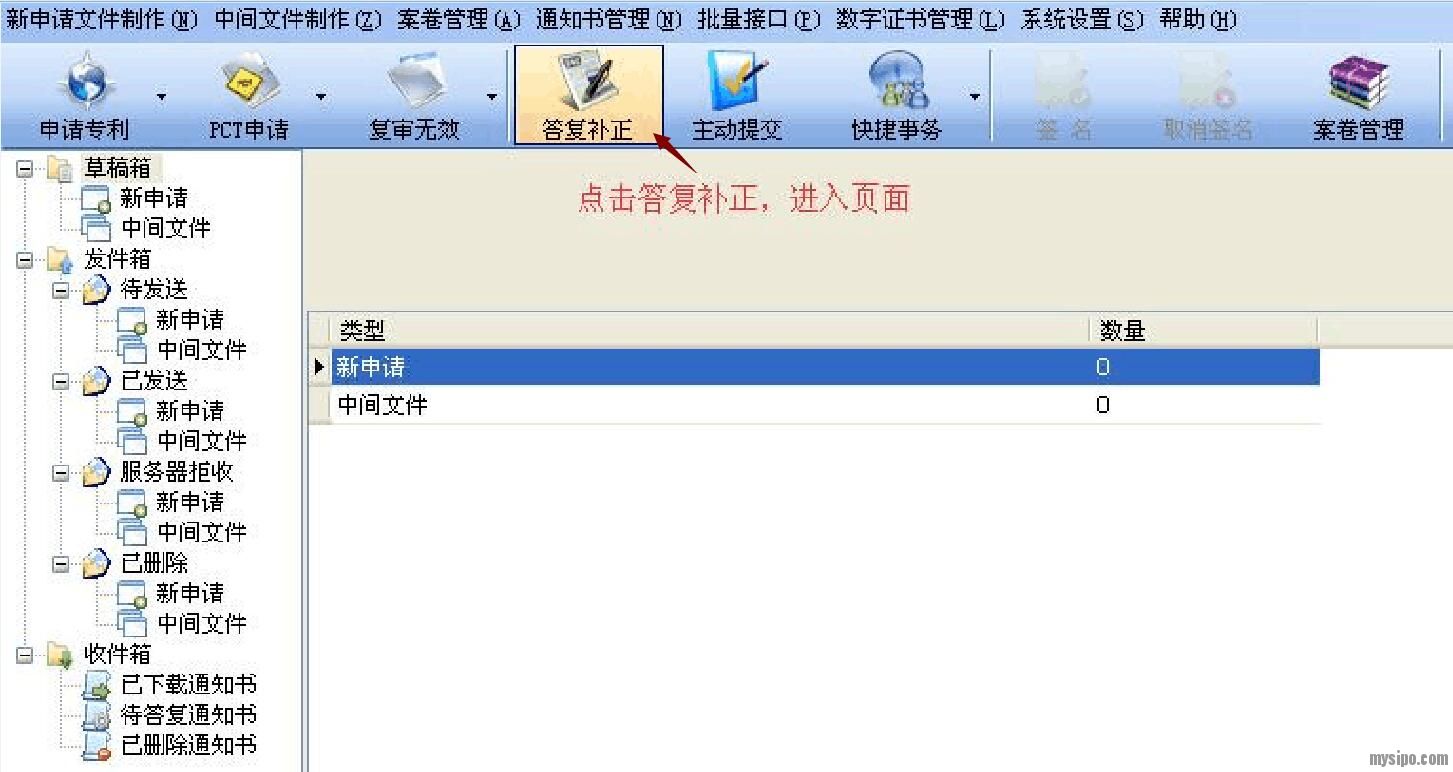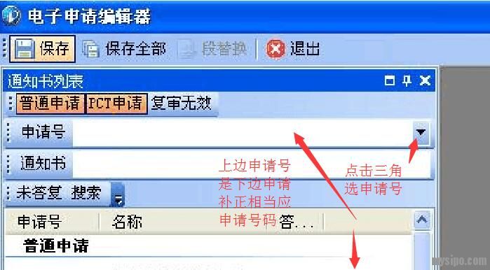 一、打开CPC客户端,单击“答复补正”,看到下边的,先点击补正通知书,再点击上边申请号框后边三角,里边有你所有通知号,选要补正的对应申请号!