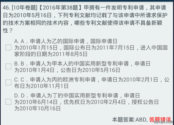 该题B选项中因为公告日为2010年5月16日,造成甲发明专利申请抵触申请的原因是因为公告了吗?