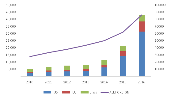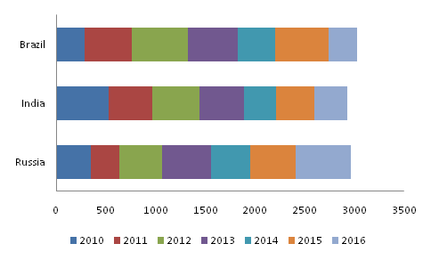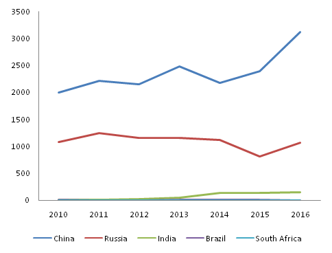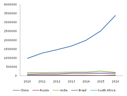 图1 金砖各国2010-2016年商标注册量