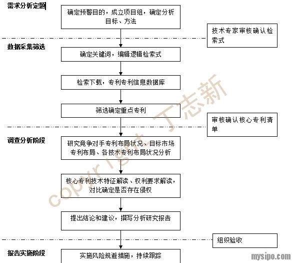 开展和实施专利预警项目,可以分为需求分析阶段、数据采集阶段、调查分析阶段、报告实施阶段。
