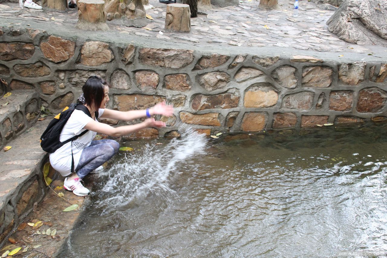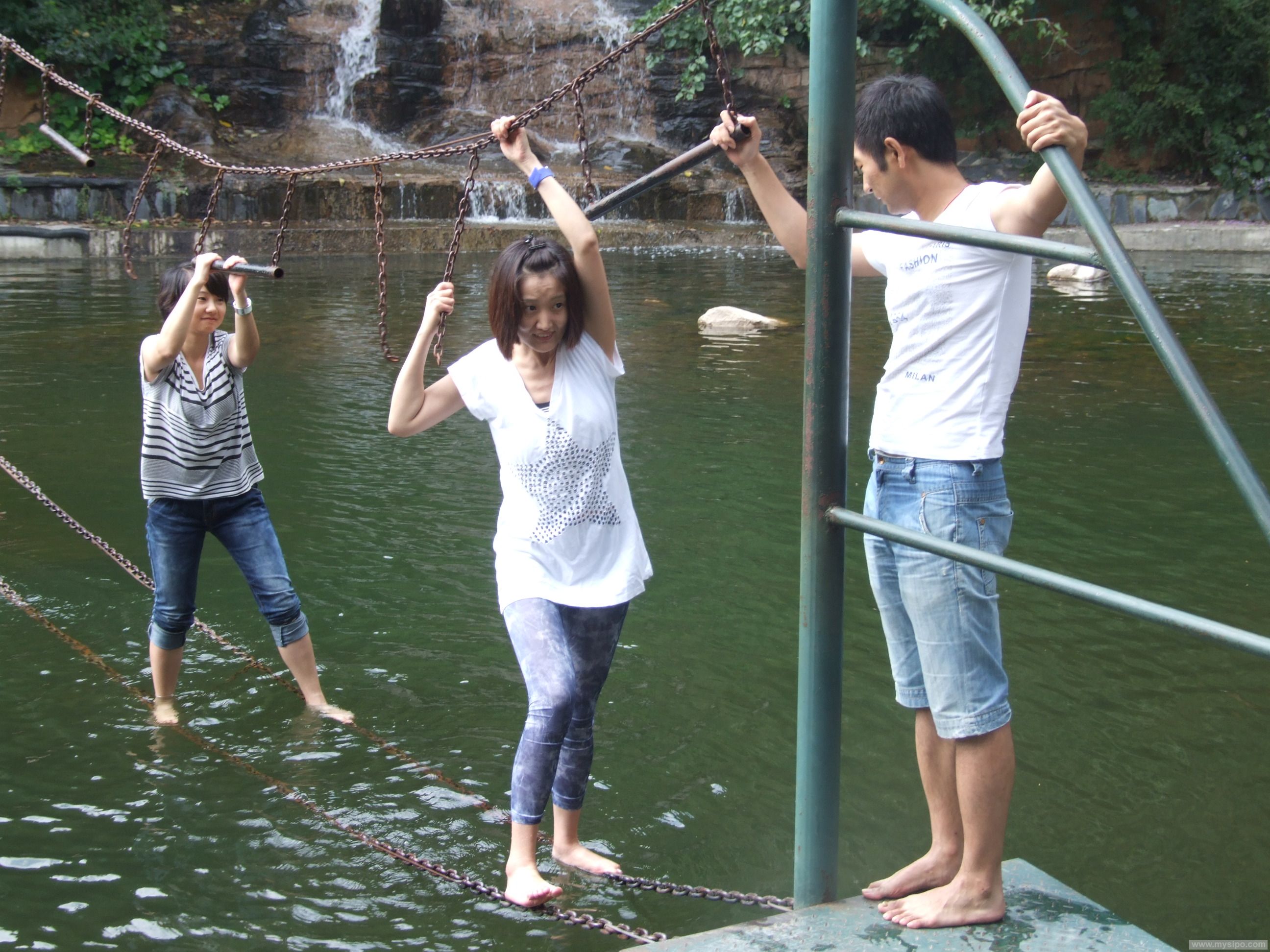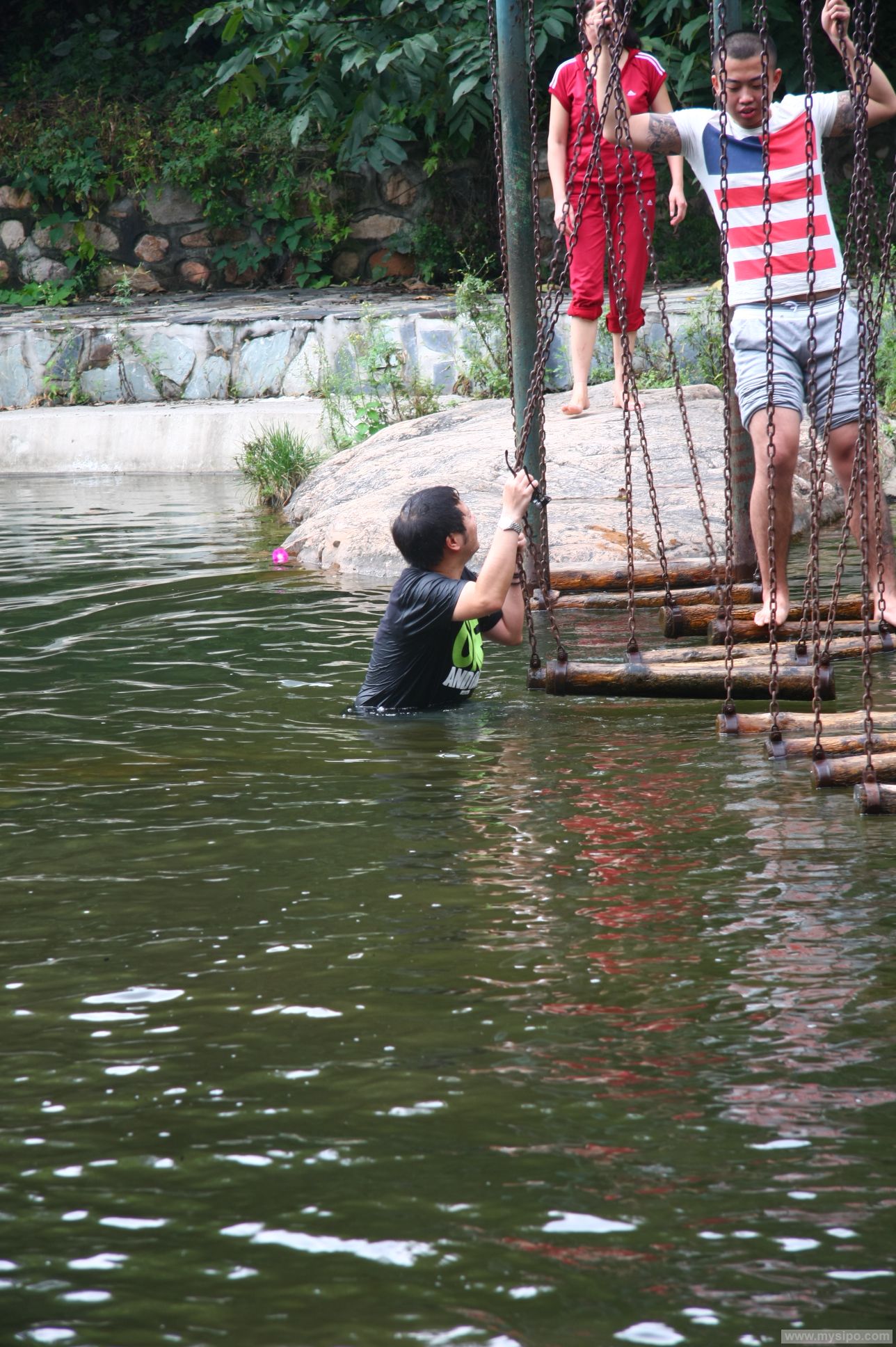 此处上演了英雄救美的感人一幕——任同学不小心把眼镜掉在了水里,我们的“最新鲜的**”(肖峰)跃入水中找了起来,然后游泳回来了。这事的主要责任在我。**在下水之前问我水有多深,我看过水桥有不小心落水的,水大约到膝盖,以为水都这么深,就和**说不深。结果**一下水就到腰间了,原来这池子是在桥下有个台,坑爹呀。