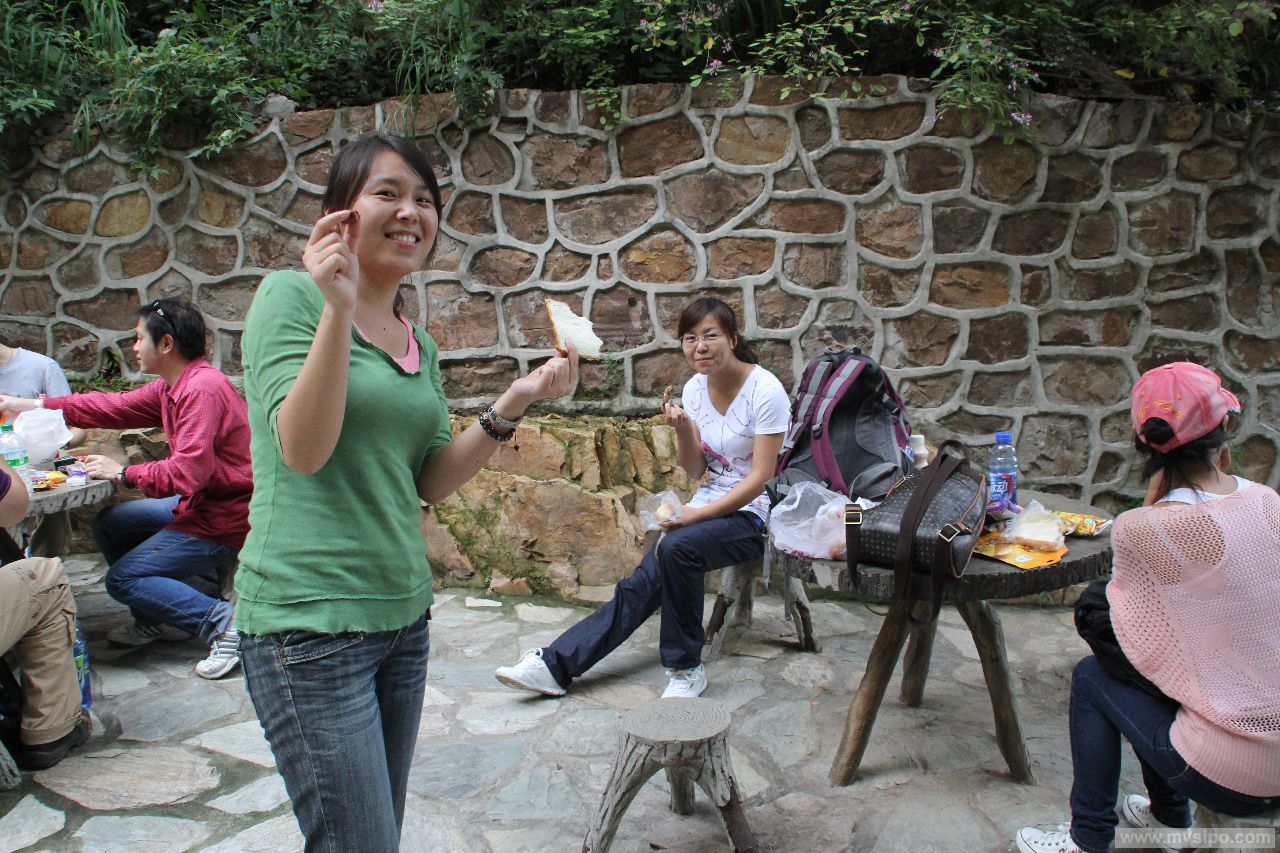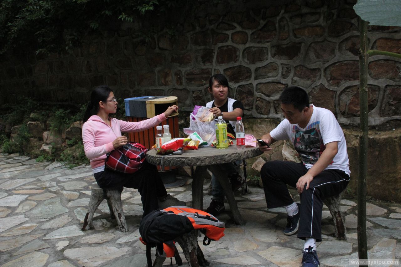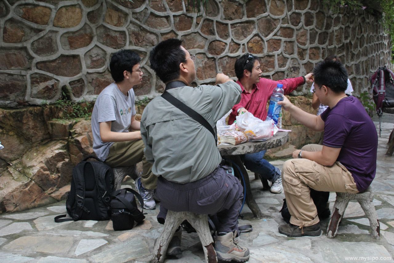 来到了预定的午餐地点,开始吃东西,补充能量。大家都带了好多吃的,相互分享,快乐的大家庭。有一名队员,很早就乍呼饿了,可真到吃饭了吧,只吃了一点点就说饱了。我就不说是谁啦,留点面子。