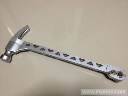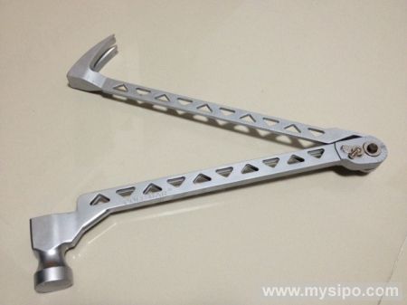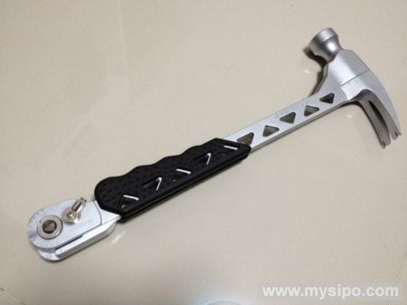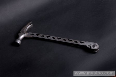 理论上,人们可以用锤子完成许多不同类别的工作:敲、砸、掀、量、拧等等,可实际上,锤子就是锤子,涉及到稍微专业点的问题还是需要专业工具来解决。不过,在这个集合式工具时代,锤子也要完成大变身。这款7合1精钢锤经过特别设计,可用作长杠杆、碾碎棒、角度测量尺、直尺、扳手、指甲钳等等!位于把手底端的锁定齿轮结构是上述功能的核心支撑,依赖它,锤子可以一“劈”为二,极大拓展使用功能;它们也可彼此分开,彼此协作,以简单的方式解决复杂问题。