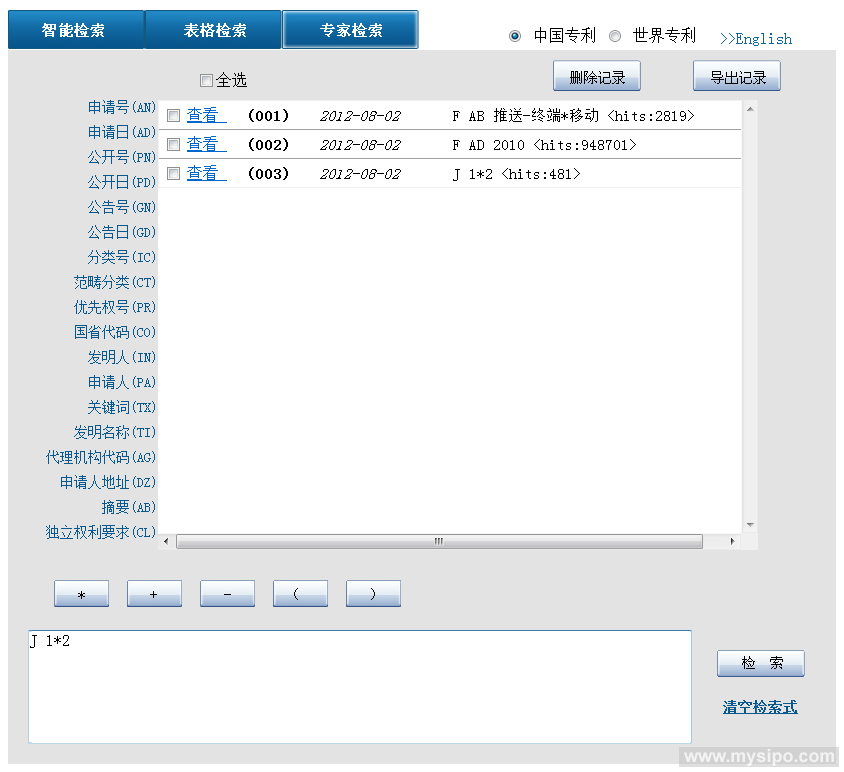 有朋友到专利之星-专利检索网站检索的时候,用到专家检索这项功能,在自建检索式的时候不会使用,这里简单举例介绍一下,希望能和各位多交流。